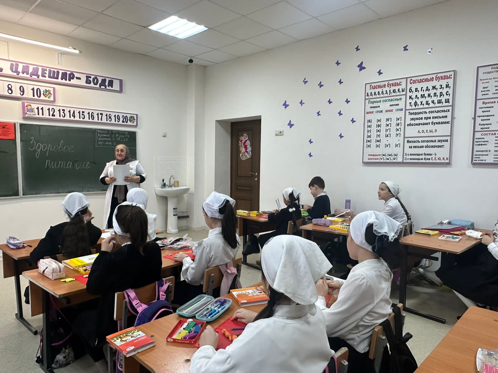 11.12.2023В школах Чеченской Республики 11 декабря 2023 г. стартовала «Российская неделя школьного питания», которая проводится с целью повышения уровня информированности обучающихся о значимости здорового питания.В рамках этой недели в МБОУ «СОШ 42», как и во всех школах города Грозного были проведены викторины, классные часы, познавательные марафоны, защита тематических проектов учащихся, книжные выставки, брейн-ринги, конкурсы рисунков, посвященных правильному питанию и здоровому образу жизни.Родительским комитетом был проведен рейд родительского контроля организации питания обучающихся и дегустация блюд школьного меню.