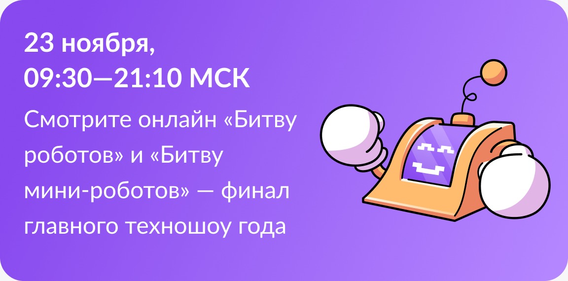 «Битва мини-роботов» в весовой категории до 1,5 килограмм, а в рамках финального этапа будет презентована «Битва дронов» в формате шоу-матча.